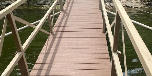 Power washes wooden or composite docks and concrete boat ramps to remove slippery algae, mildew, and lake scum, improving safety and appearance.